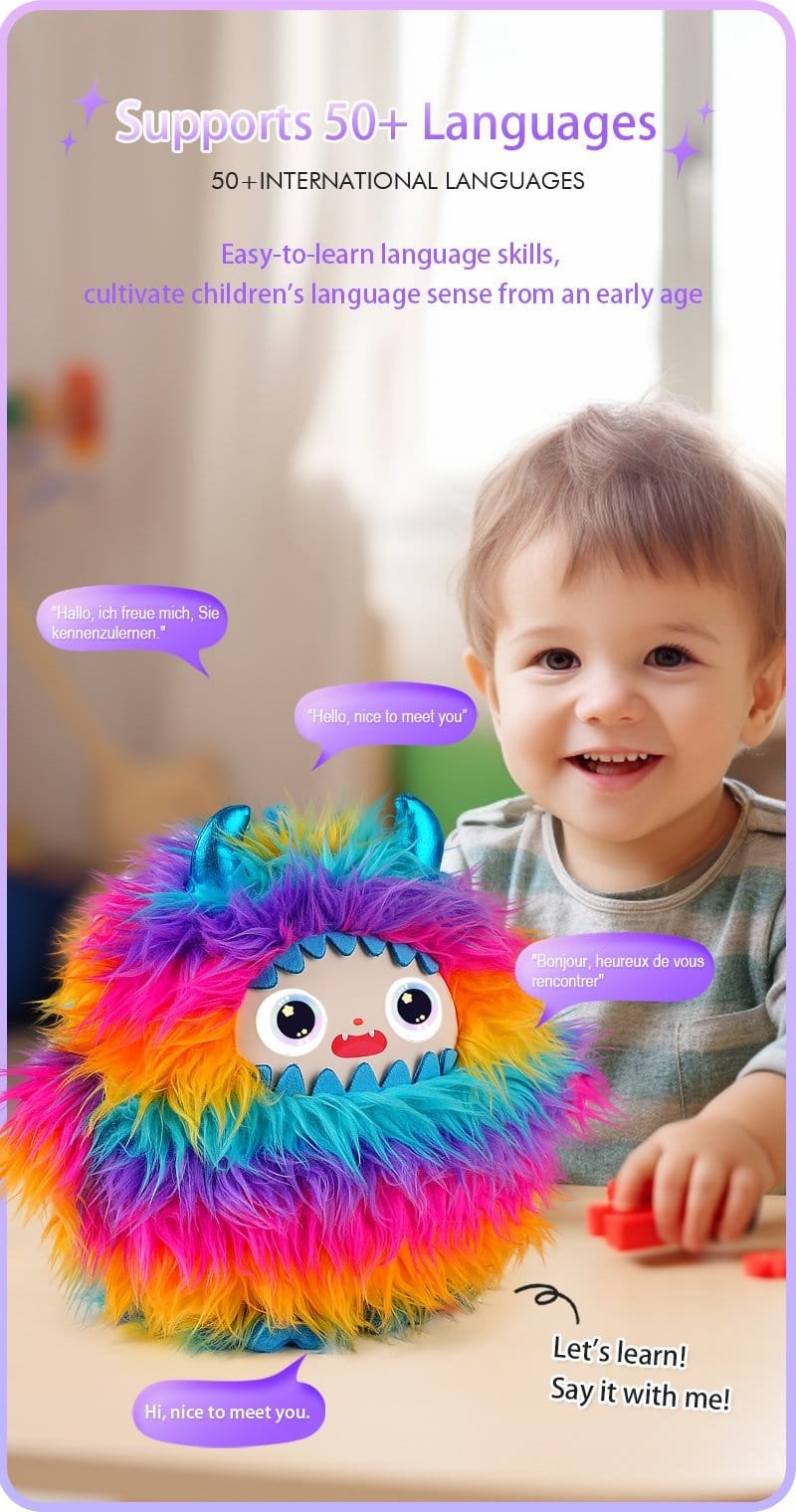 The Monster Ledodo plush toy can speak multiple languages: English, Spanish, Chinese, Korean, Japanese, Russian, Vietnamese, and more. You can switch between them on your phone. This way, Monster Ledodo can be your child’s constant companion, answering questions, playing games, and soothing them. It can also serve as a language learning tool.